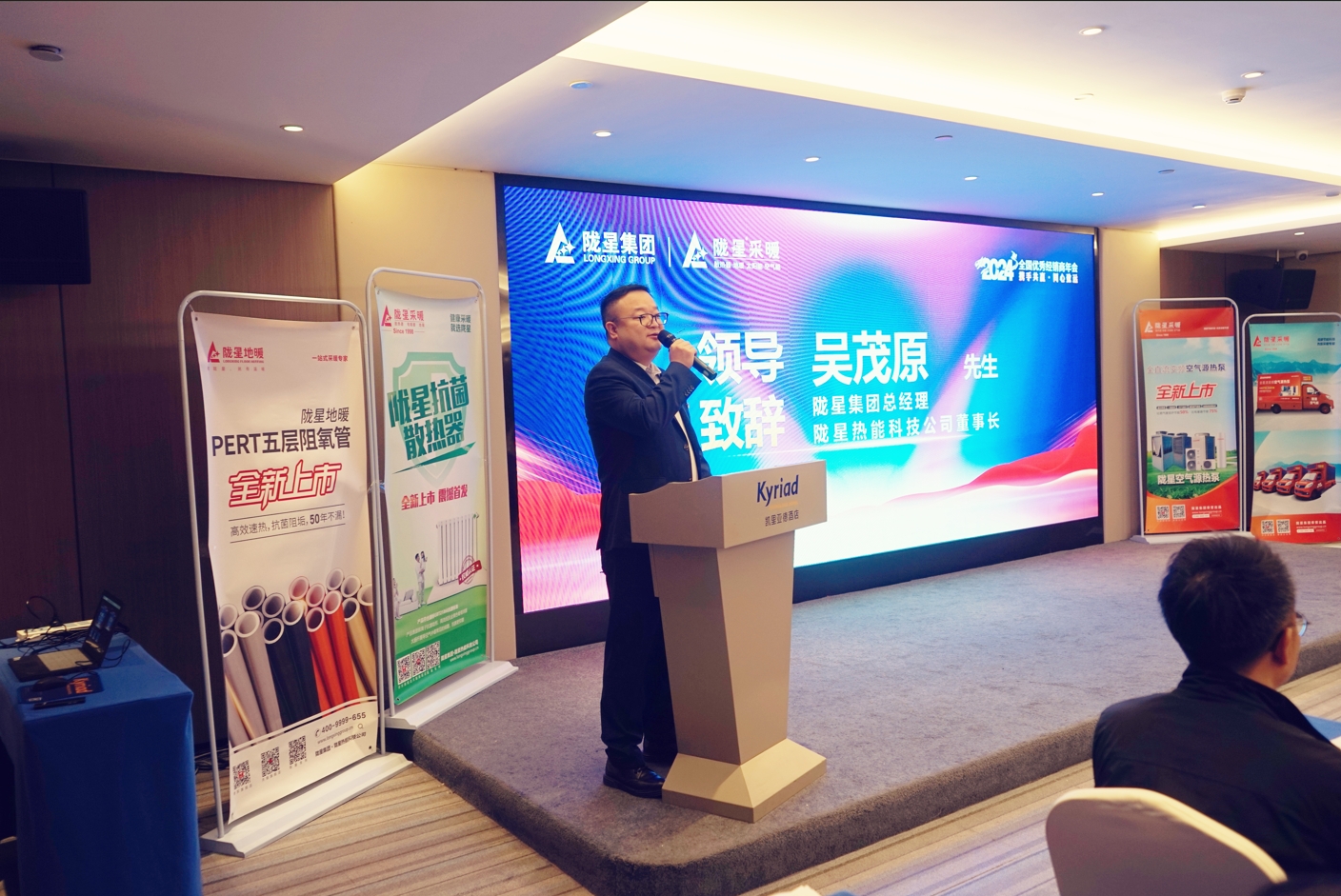 通過會場播放的隴星空氣源熱泵短視頻,以及隴星熱能科技公司副總經理、工廠副廠長馬智林先生的精彩演講,大家了解到隴星全直流變頻空氣源熱泵,暖冷兩用,一級能效,-35℃正常運行,可實現365天全屋采暖和制冷,為用戶打造溫暖舒適的家居環境!