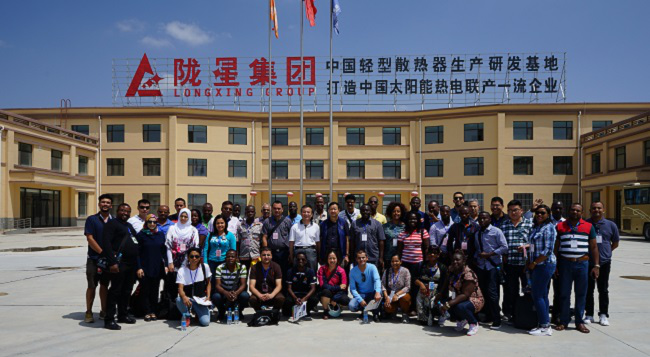 在集團公司總裁吳繼祖陪同下,參觀團先后深入到廠房和制造車間,對生產環境、工藝流程、主要設備、人員配備情況等進行了參觀和了解。參觀團一行對我公司新研發的輕型散熱器、平板集熱器、熱電聯產、PIC抑制熱傳導生產線等進行了現場觀摩。他們在全方位了解公司的規模實力、研發實力及詳細的產品介紹后,高度贊揚了公司產品的質量和創新研發能力,對我公司的產品產生較大的興趣并期望今后與我公司能有合作機會。